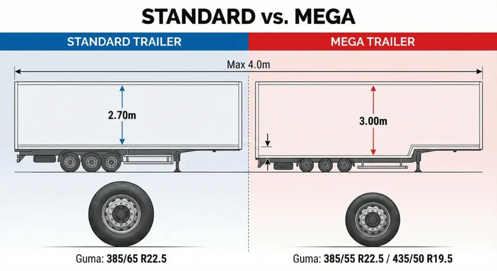 Ne možete imati Mega prikolicu sa standardnim gumama 385/65R22.5. One su previsoke.