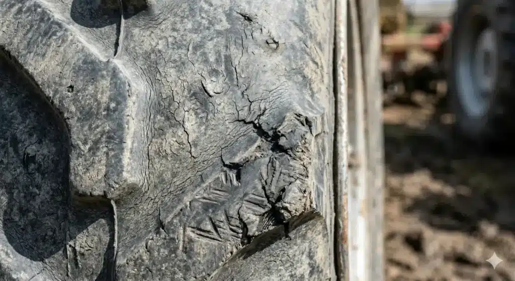 Polovna guma može imati odličan krampon, ali pravo pitanje je – koliko je stara i gde je stajala? Traktorske gume koje godinama stoje na suncu, kiši i mrazu trpe ogromna UV oštećenja. Prirodni kaučuk i platna unutar gume se isušuju i gube elastičnost. Vi kupite gumu koja vizuelno deluje dobro (često premazana sredstvima za sjaj pred prodaju), montirate je, uđete u oranje pod punim opterećenjem i – platna jednostavno popucaju iznutra.
